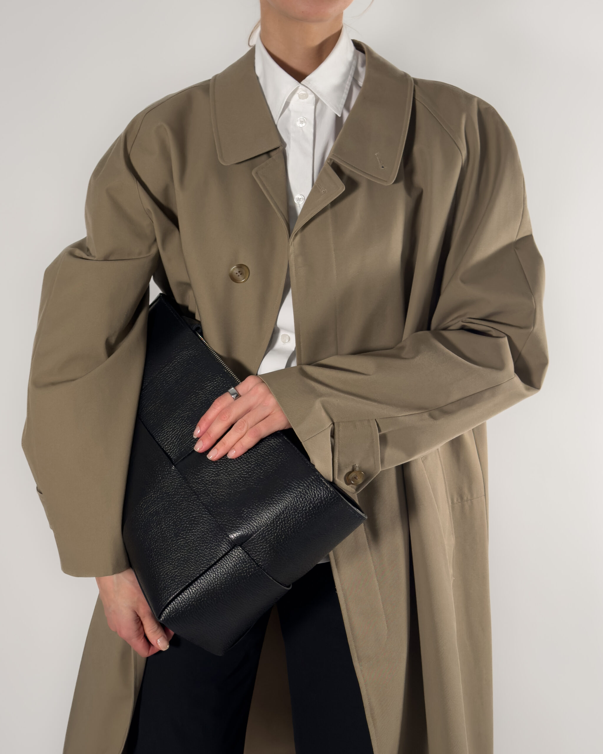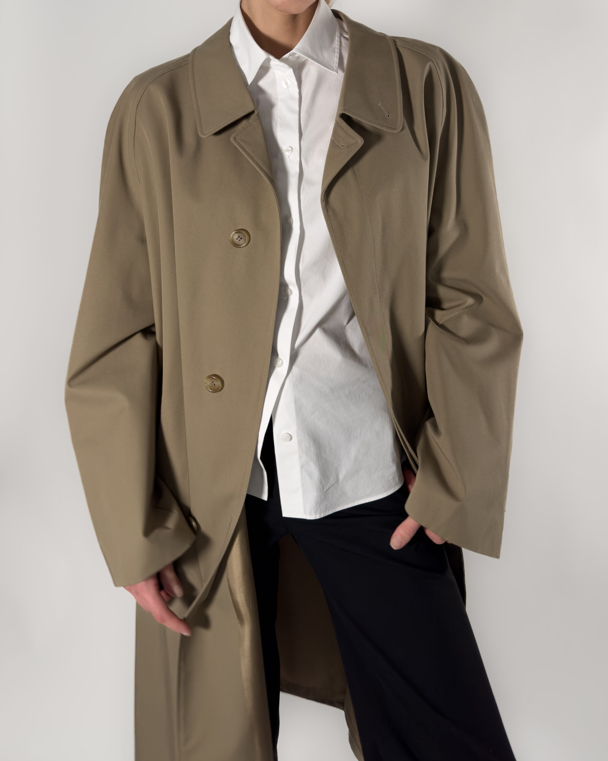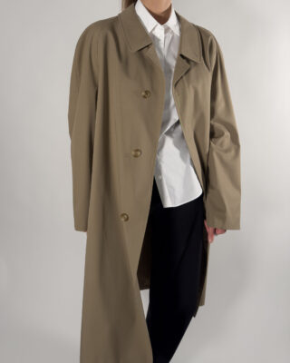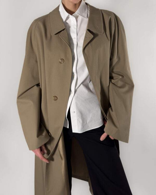 Classic trench coat by Schneiders, made in Austria. Its refined fit and neutral taupe shade make it a wardrobe essential for any season.