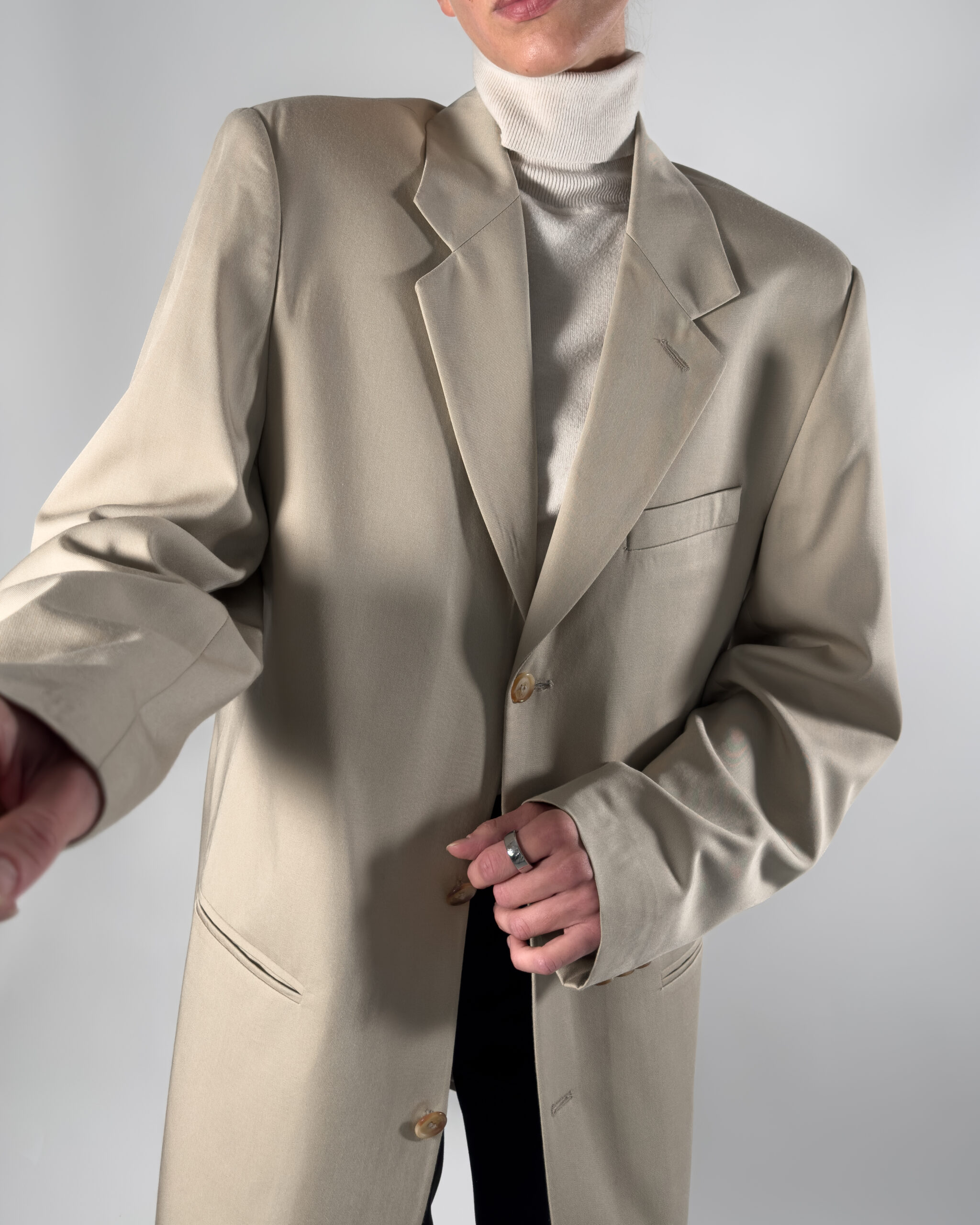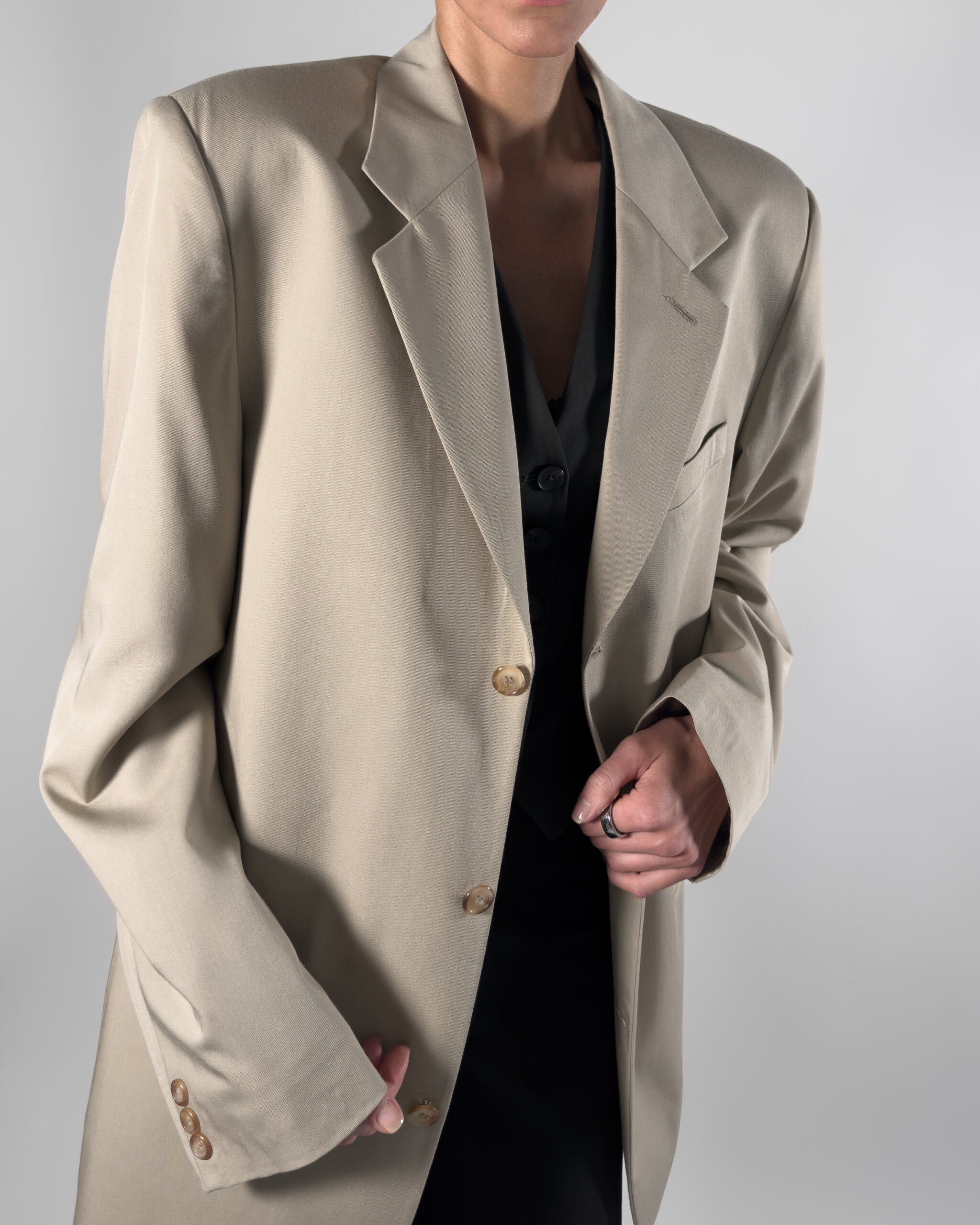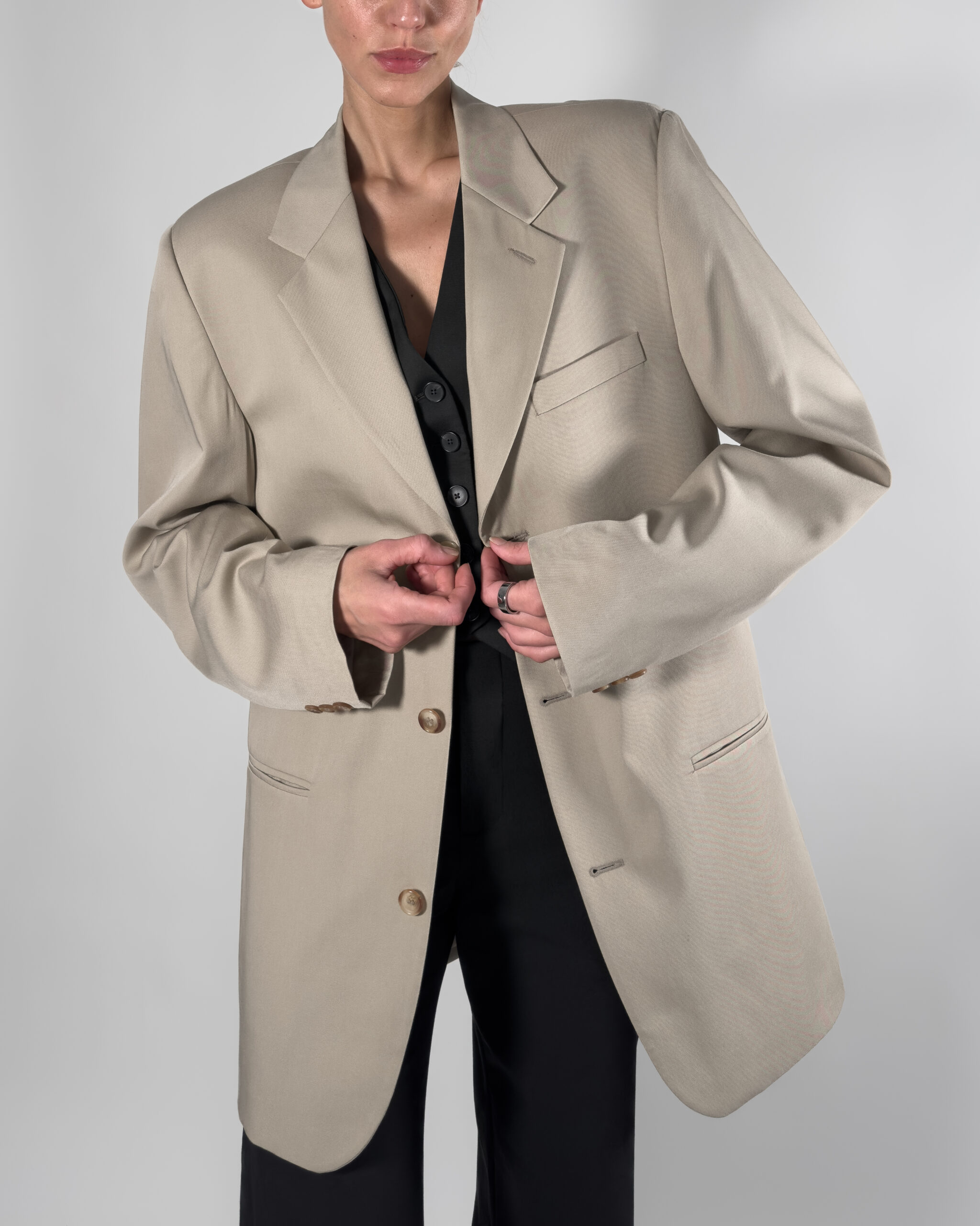 Unisex/mens viscose blend blazer in a soft beige hue. Made in Portugal