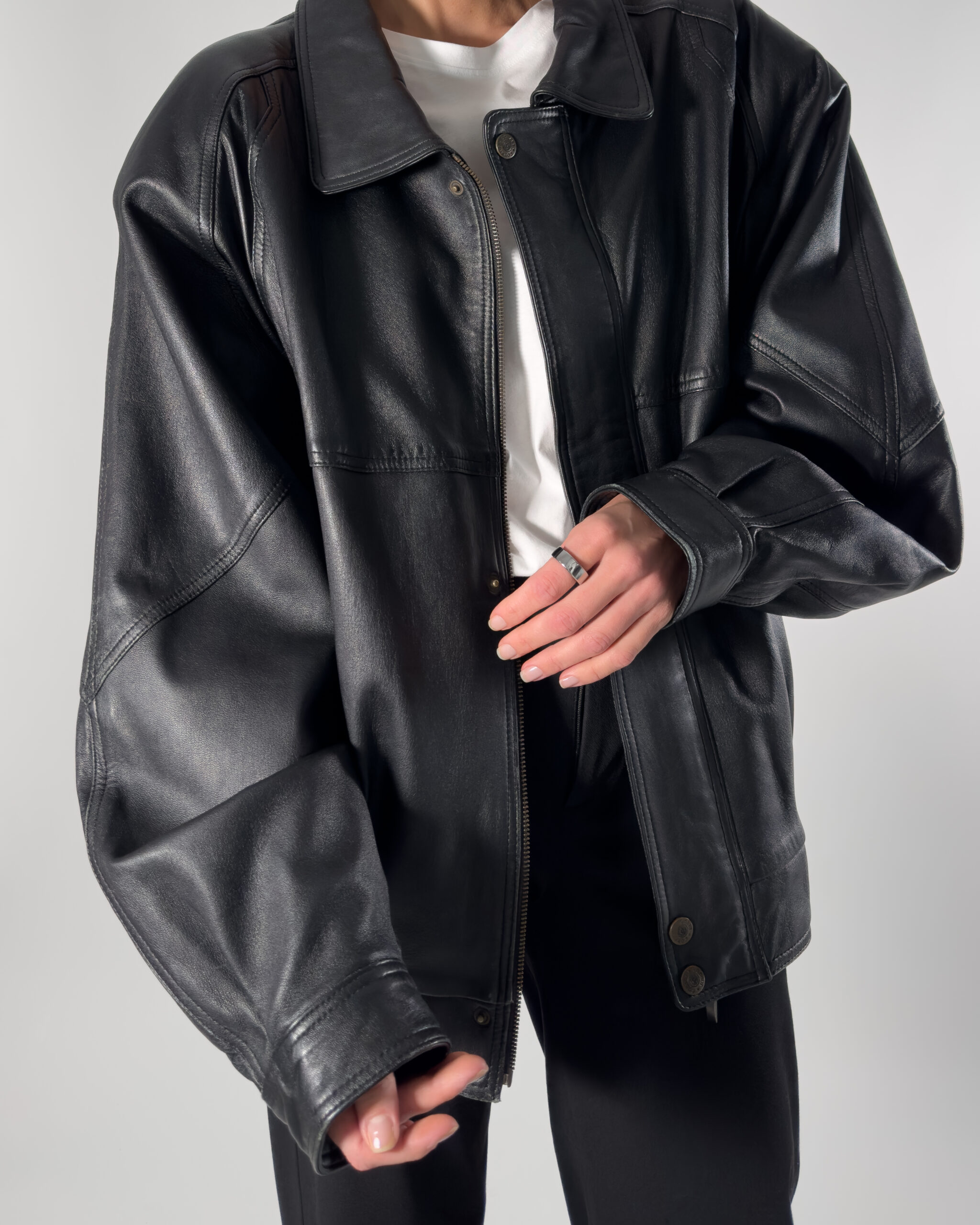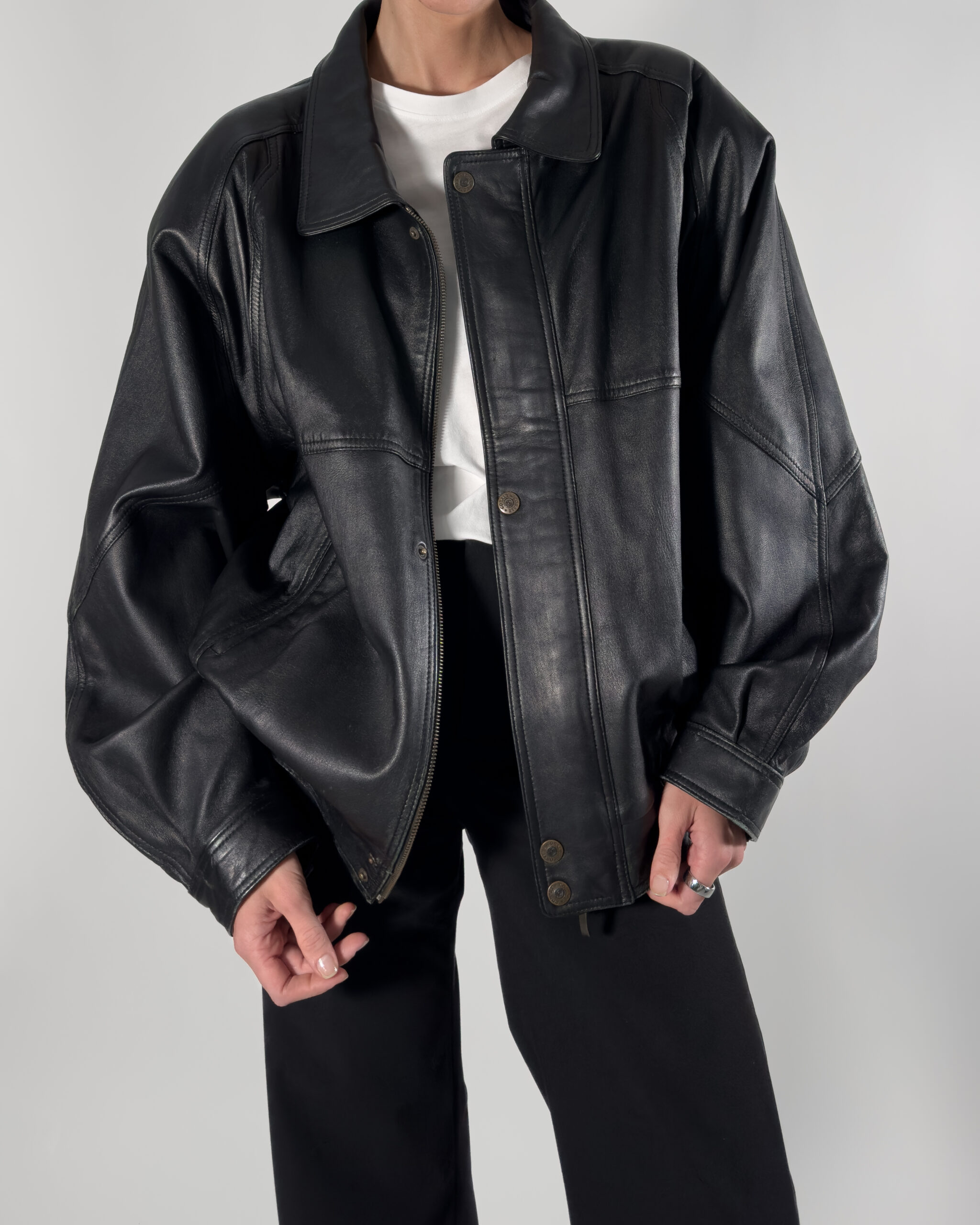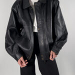 Cobalt genuine leather bomber jacket in sleek black. By Australian designer, this jacket features high-quality, soft leather.