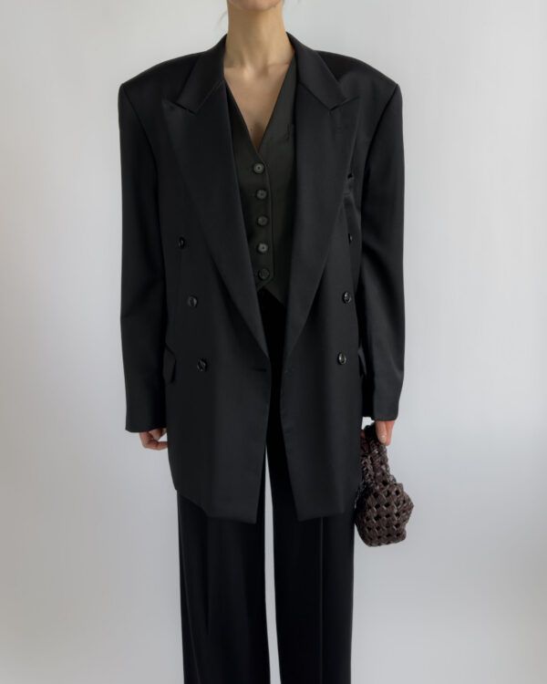 90s vintage blazer by Festive Turo Tailor featuring a sharp double-breasted silhouette and structured shoulders. Made from 100% pure new wool with viscose lining. Impeccably preserved in like new condition.