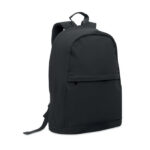15 inch laptop backpack in recycled pre-consumer cotton and recycled polyester (70%/30%). It has front zippered pocket, zippered pocket on the back side. Soft padded back and shoulder straps. Trolley holder on reverse side.