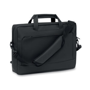 Laptop backpack in 300D RPET Polyester with padded shoulder strap including one main internal compartment for 16 inch laptop and a USB charging cable.