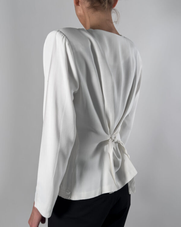Blondie&Me blouse with timeless silhouette, Made in the USA. Featuring embroidery along the button-up front, adjustable back for a flattering fit. Soft blend of acetate and rayon, the blouse feels light and smooth against the skin.