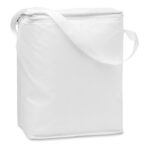 Cooler bag for 6 1,5l bottles in 210 polyester. With non woven white trimmings. 80gr/m². Isolation material: aluminium foil. Capacity 12,5L.