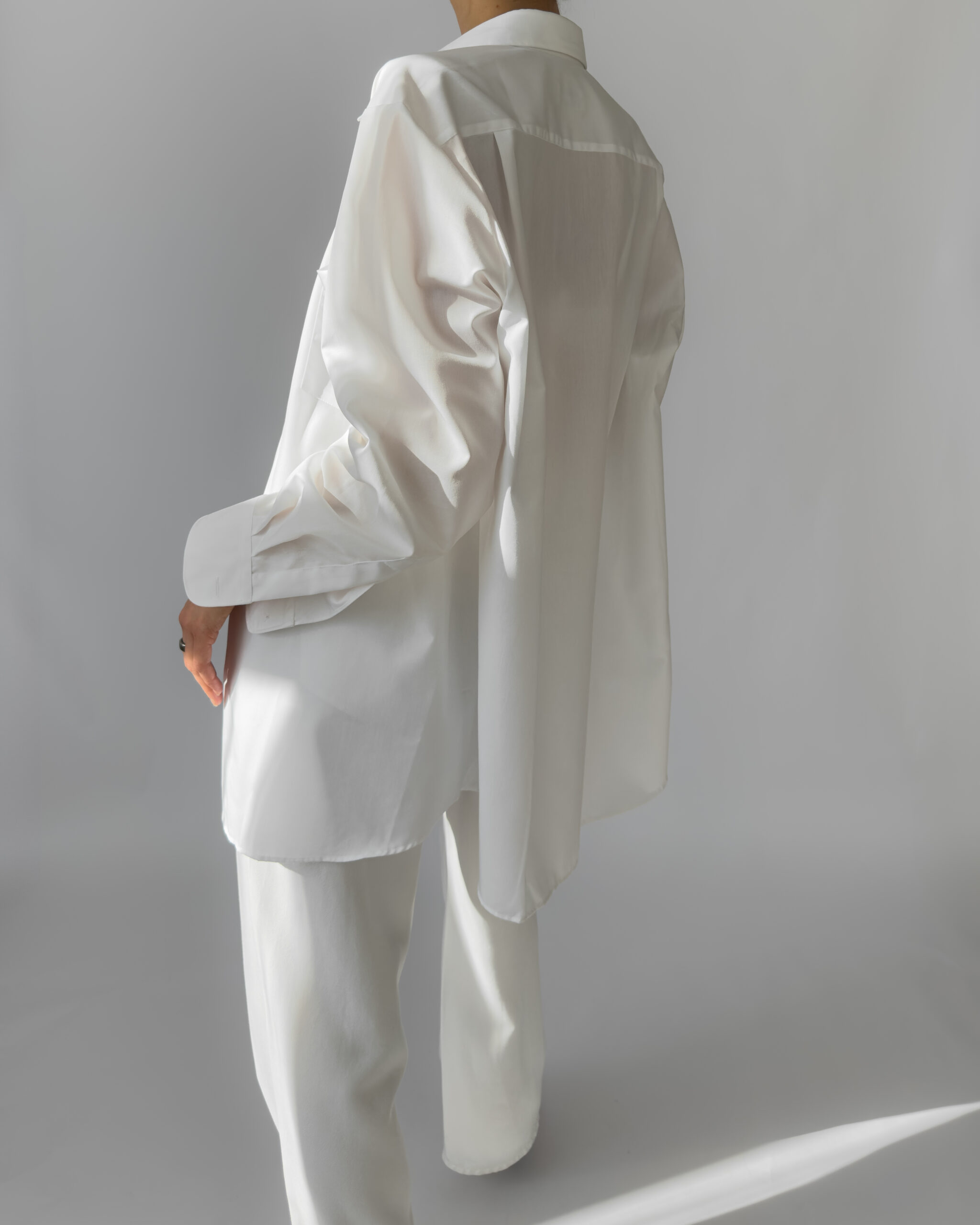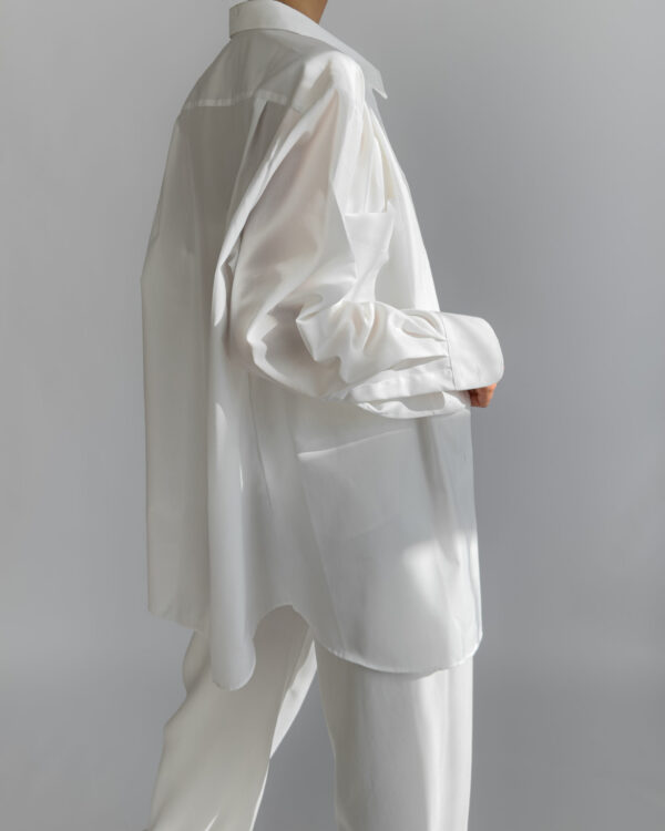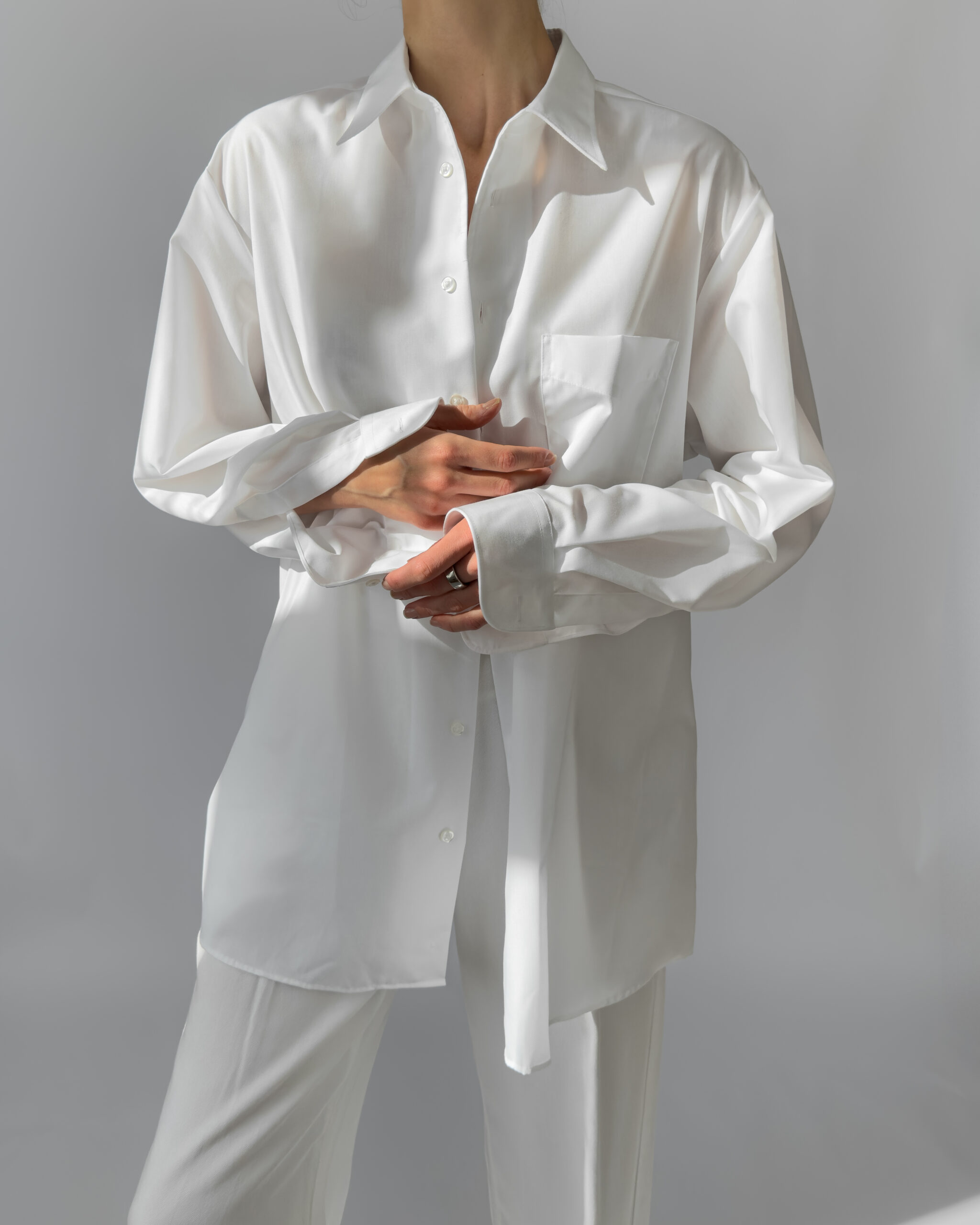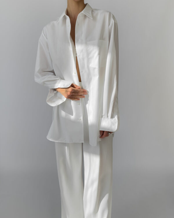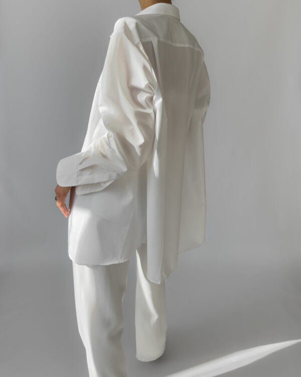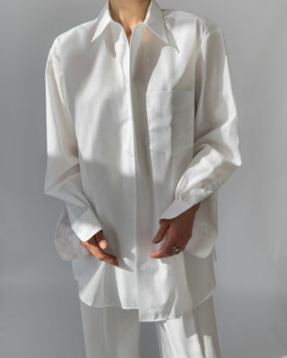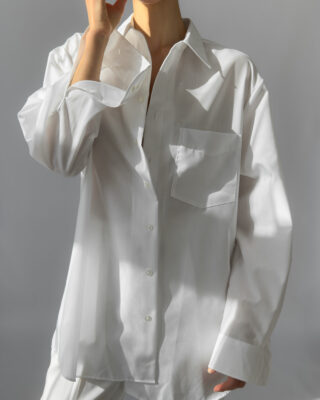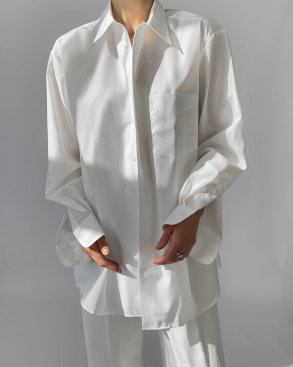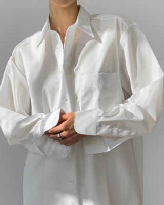 Crisp and timeless oversized white shirt by Walbusch, labelled Extra Glatt Bügelfrei (easy-care, wrinkle-free). Made from 100% cotton, offering a soft yet structured drape. Features a classic collar, single chest pocket, and button-down closure.