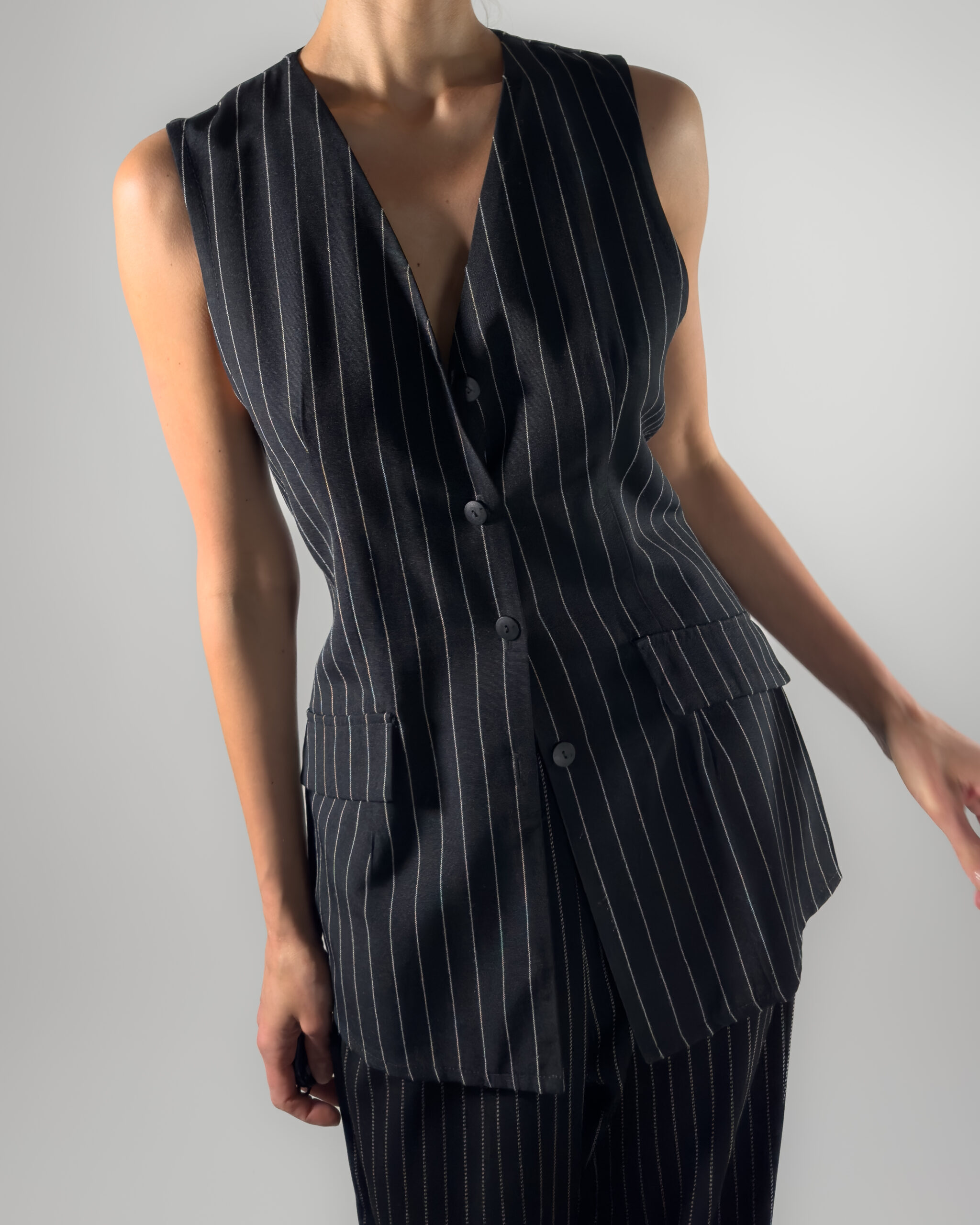 Timeless pinstriped vest. Pairs beautifully with the pinstriped blazer and trousers (available separately).