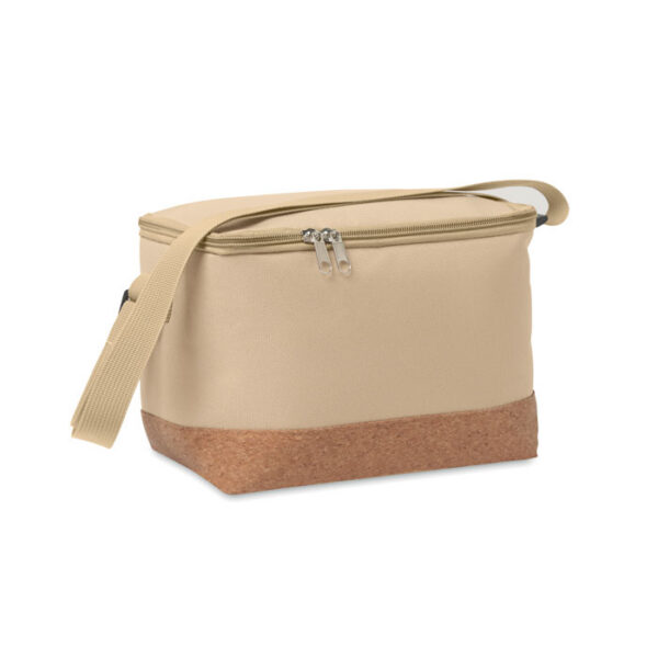 RPET 600D cooler bag with cork base detail. PEVA with 2mm PE foam. Capacity 5L.