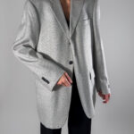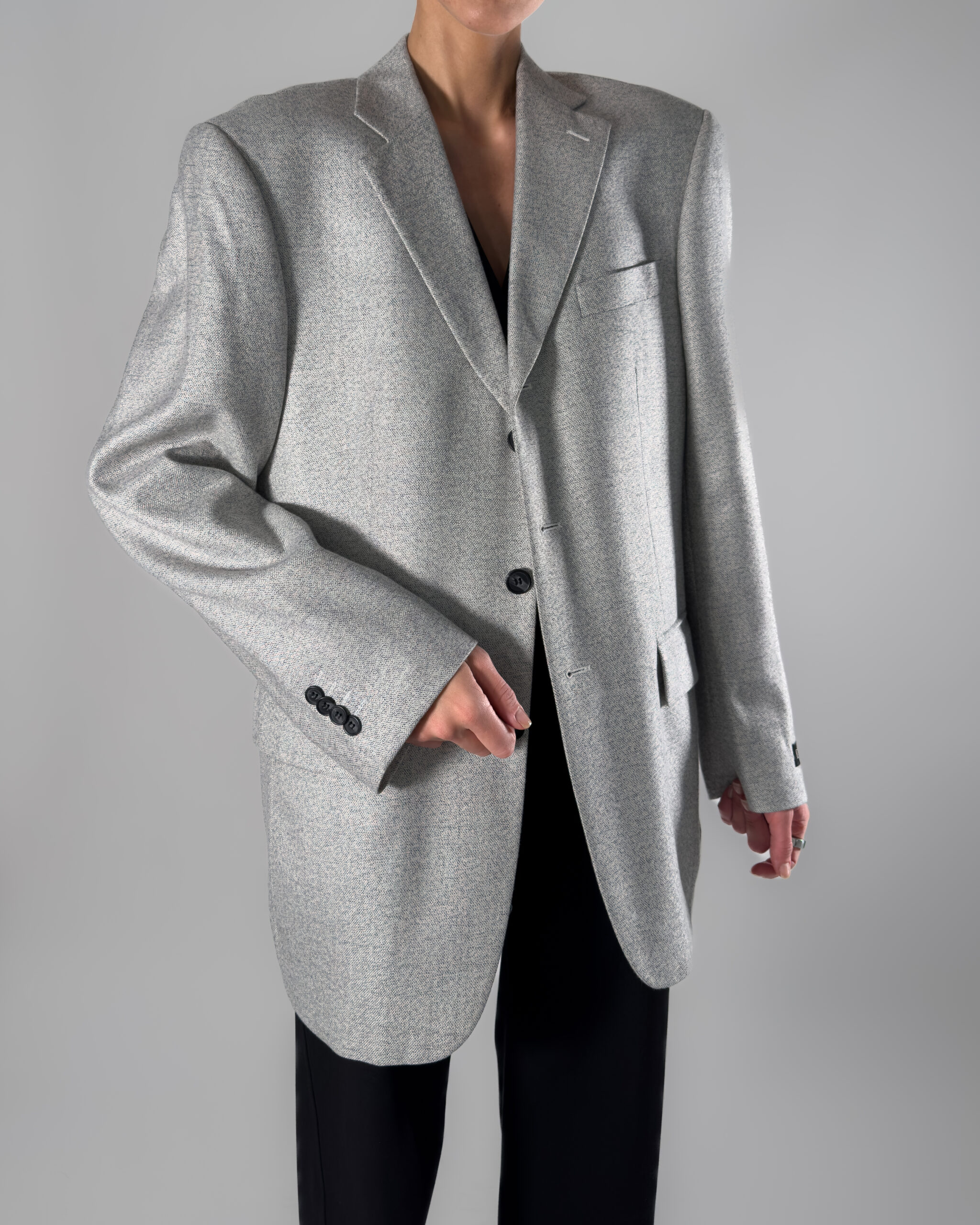 • Design: Button-up closure, back slit and shoulder pads